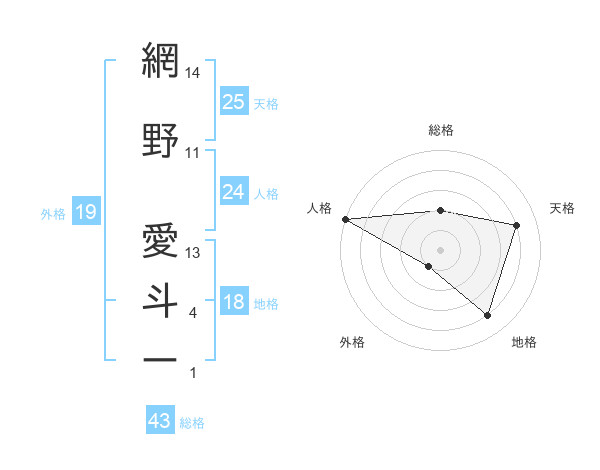 網野 愛斗ーさんを姓名の画数から五運を鑑定