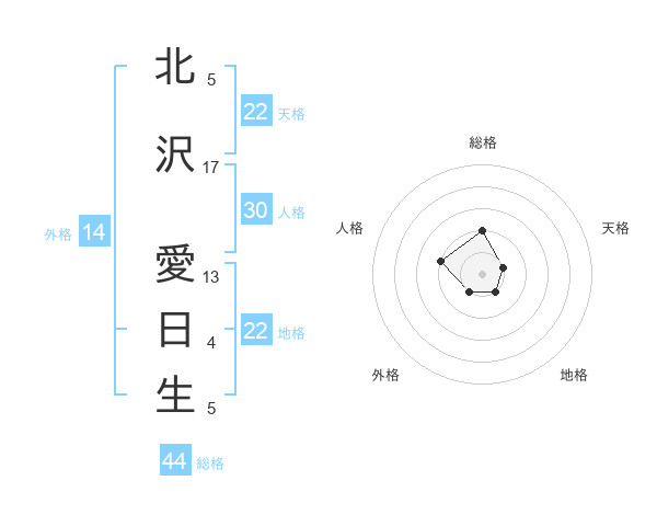 北沢 愛日生さんを姓名の画数から五運を鑑定