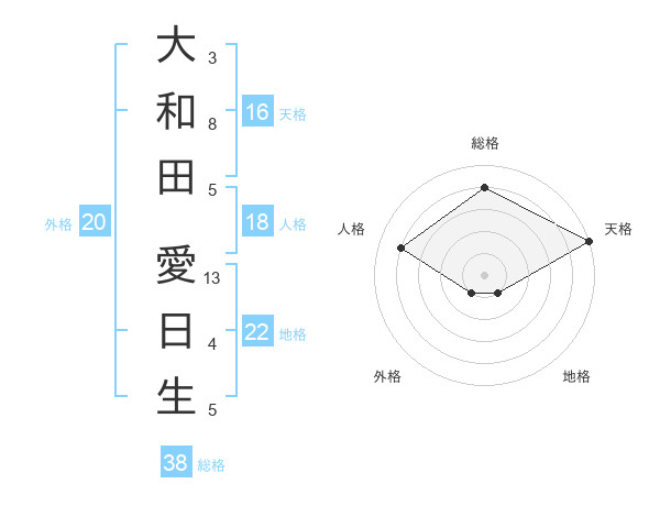 大和田 愛日生さんを姓名の画数から五運を鑑定