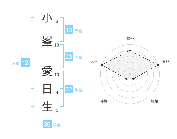 小峯 愛日生さんを姓名の画数から五運を鑑定