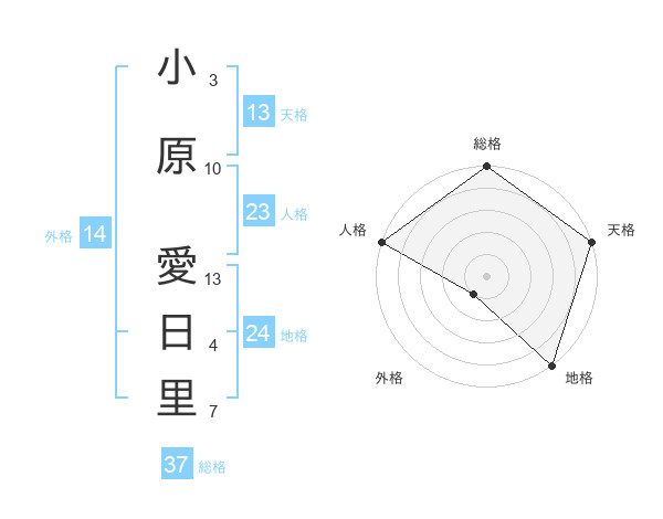 小原 愛日里さんの総格は37画の5点