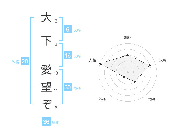 大下 愛望ぞさんの天格は6画の4点!