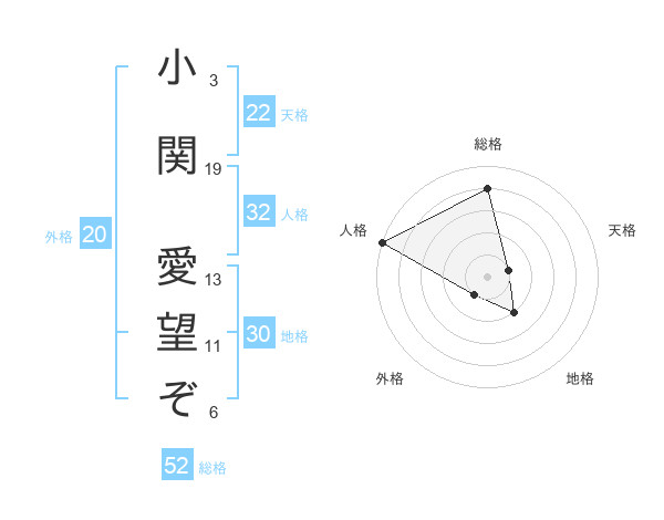 小関 愛望ぞさんを姓名の画数から五運を鑑定