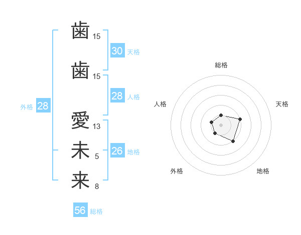 歯歯 愛未来さんを姓名の画数から五運を鑑定