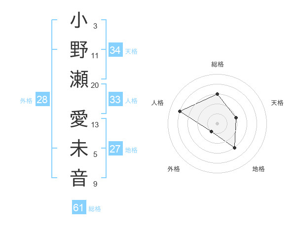 小野瀬 愛未音さんを姓名の画数から五運を鑑定