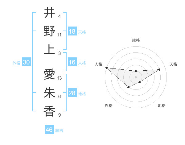 井野上 愛朱香さんの人格は16画の5点