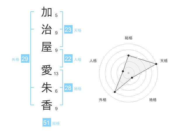 加治屋 愛朱香さんを姓名の画数から五運を鑑定