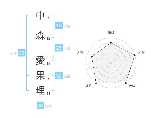 中森 愛果理さんを姓名の画数から五運を鑑定