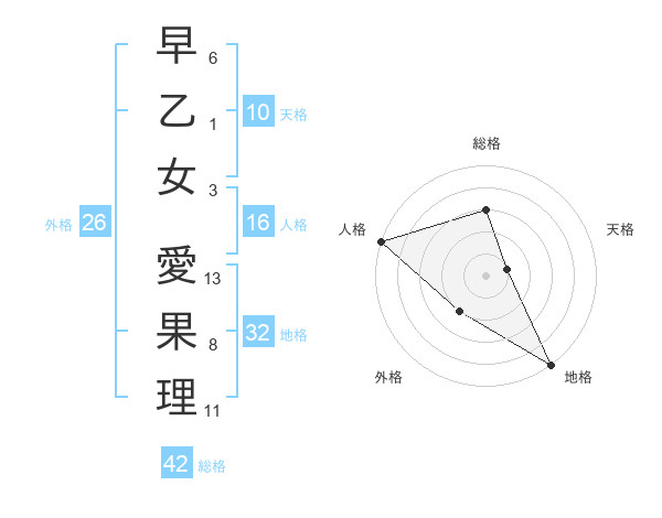 早乙女 愛果理さんを姓名の画数から五運を鑑定
