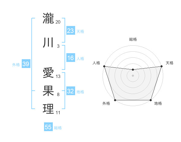 瀧川 愛果理さんを姓名の画数から五運を鑑定