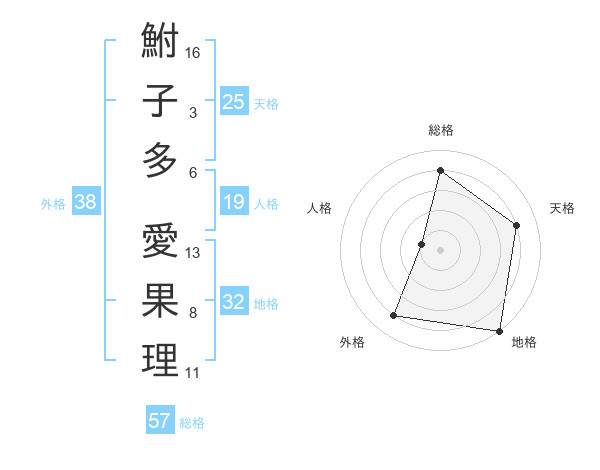 鮒子多 愛果理さんを姓名の画数から五運を鑑定