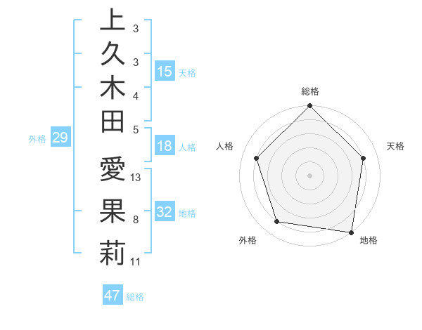 上久木田 愛果莉さんを姓名の画数から五運を鑑定