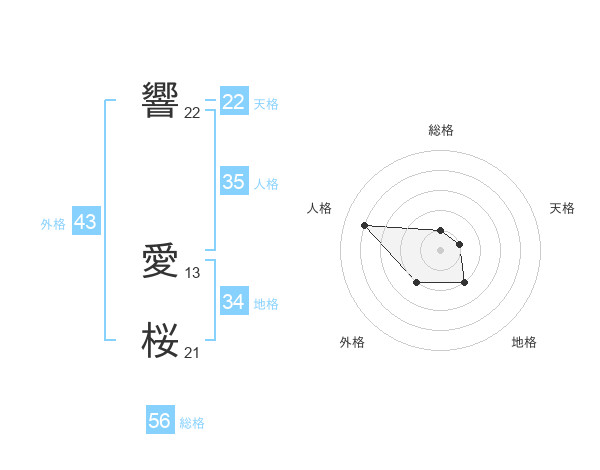 響 愛桜さんの天格は22画の1点!