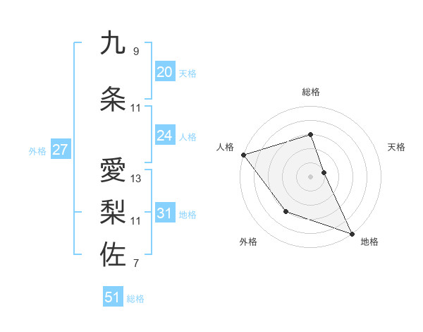 九条 愛梨佐さんを姓名の画数から五運を鑑定