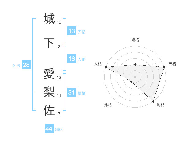 城下 愛梨佐さんの総格は44画の2点!