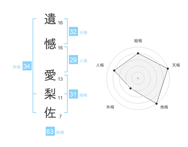 遺憾 愛梨佐さんを姓名の画数から五運を鑑定