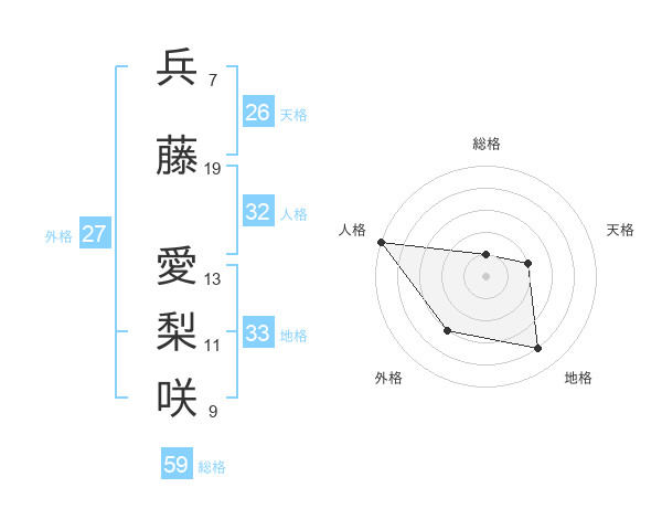兵藤 愛梨咲さんの総格は59画の1点!