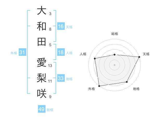 大和田 愛梨咲さんの天格は16画の5点