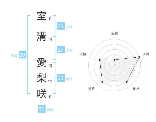 室溝 愛梨咲さんの天格は23画の5点!