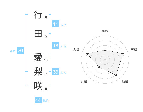 行田 愛梨咲さんの総格は44画の2点!