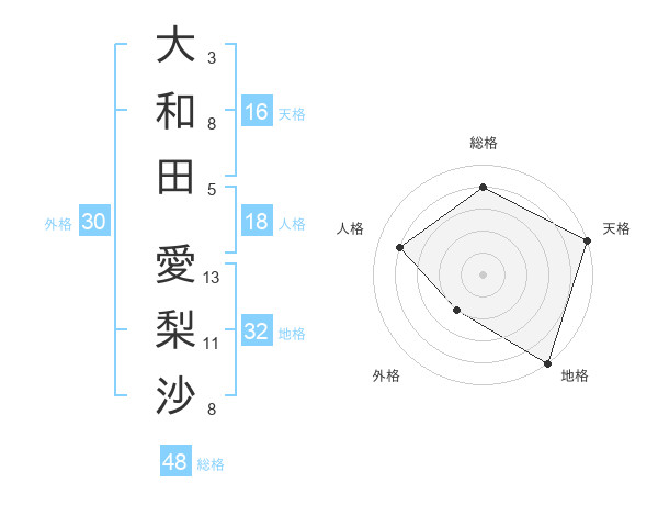 大和田 愛梨沙さんの天格は16画の5点!