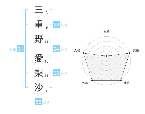 三重野 愛梨沙さんを姓名の画数から五運を鑑定