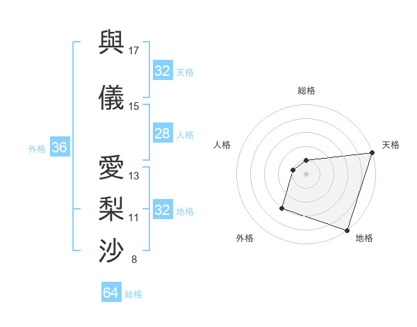 與儀 愛梨沙さんの天格は32画の5点!
