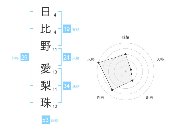 日比野 愛梨珠さんを姓名の画数から五運を鑑定