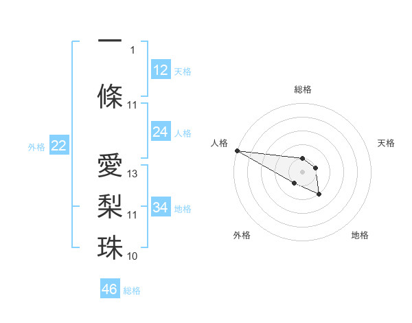一條 愛梨珠さんの外格は22画の1点!
