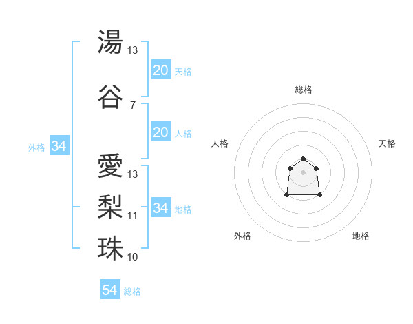 湯谷 愛梨珠さんの総格は54画の1点!