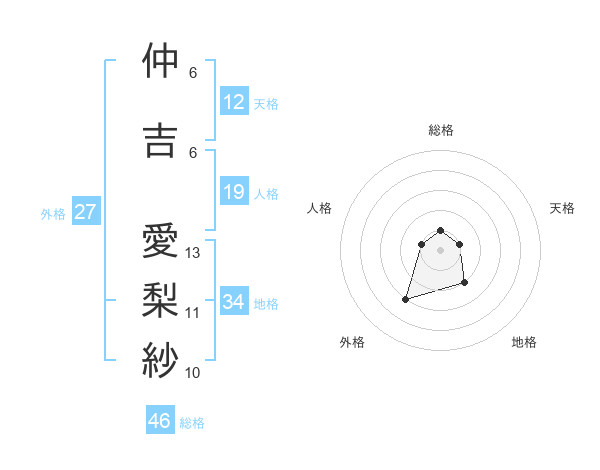 仲吉 愛梨紗さんの総格は46画の1点!