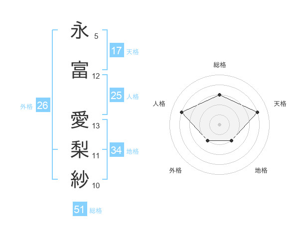 永富 愛梨紗さんを姓名の画数から五運を鑑定