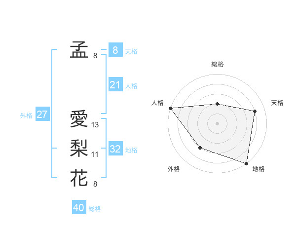 孟 愛梨花さんの天格は8画の4点!