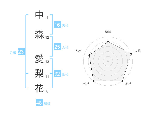 中森 愛梨花さんを姓名の画数から五運を鑑定