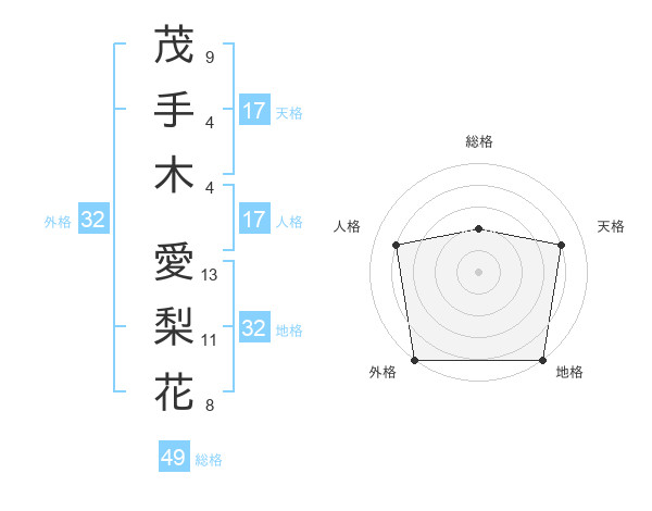 茂手木 愛梨花さんを姓名の画数から五運を鑑定