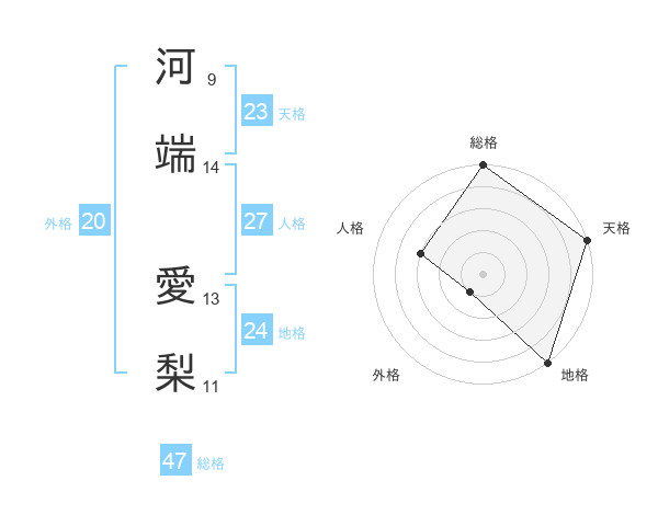 河端 愛梨さんを姓名の画数から五運を鑑定
