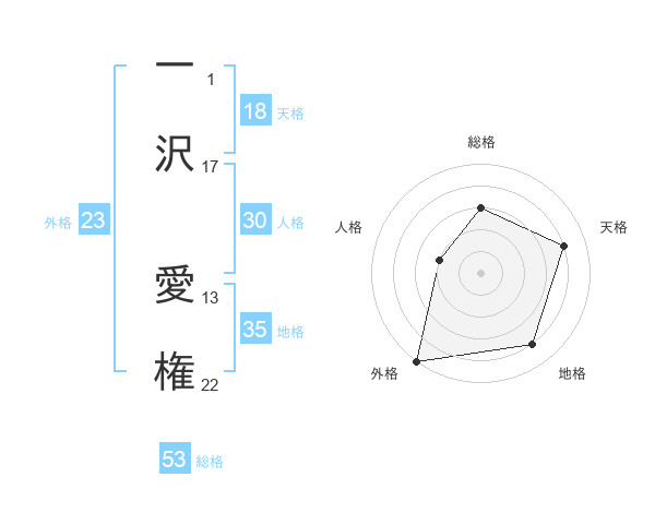 一沢 愛権さんを姓名の画数から五運を鑑定