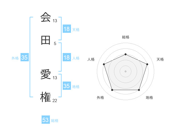 会田 愛権さんの総格は53画の3点!