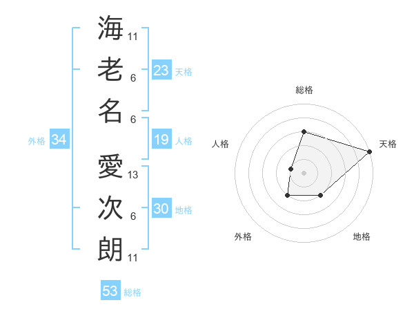 海老名 愛次朗さんの総格は53画の3点!