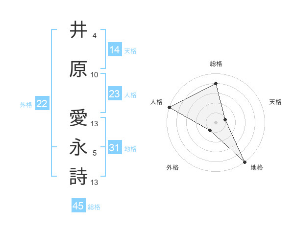 井原 愛永詩さんの総格は45画の4点!