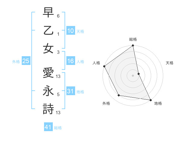 早乙女 愛永詩さんを姓名の画数から五運を鑑定