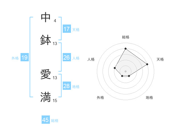 中鉢 愛満さんを姓名の画数から五運を鑑定