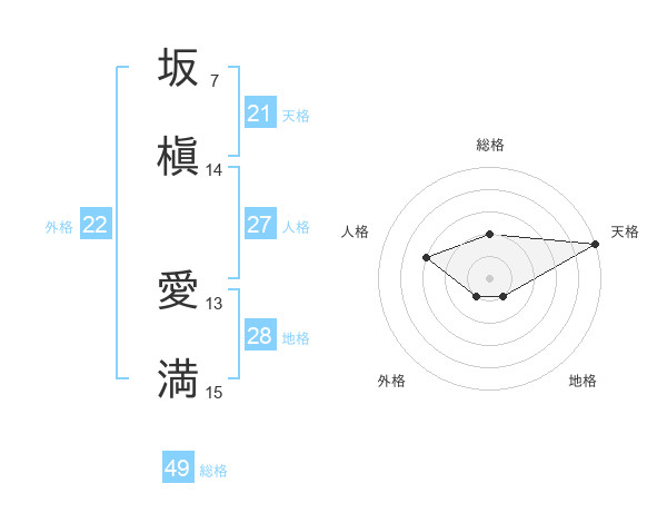 坂槇 愛満さんを姓名の画数から五運を鑑定