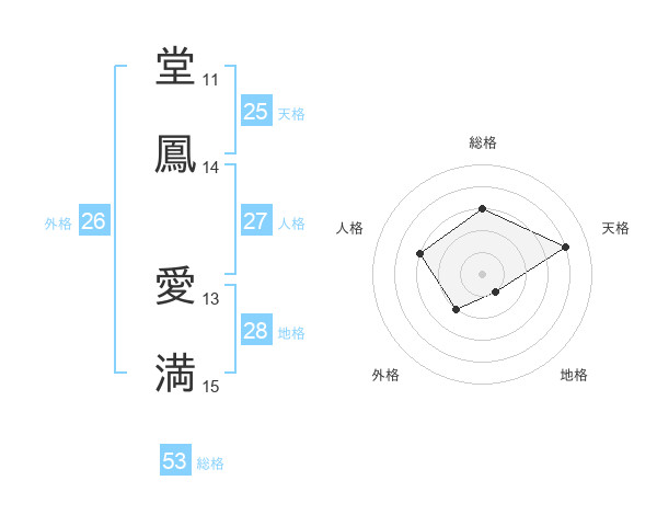 堂鳳 愛満さんの総格は53画の3点!