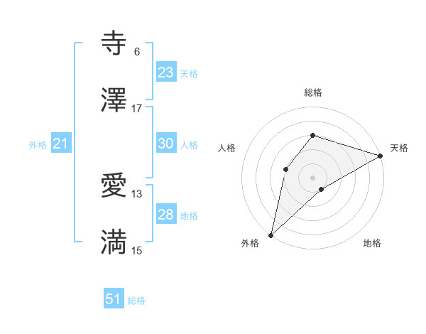 寺澤 愛満さんを姓名の画数から五運を鑑定