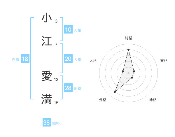 小江 愛満さんの総格は38画の4点!