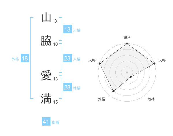 山脇 愛満さんを姓名の画数から五運を鑑定