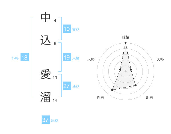 中込 愛溜さんを姓名の画数から五運を鑑定