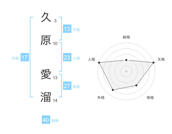 久原 愛溜さんを姓名の画数から五運を鑑定