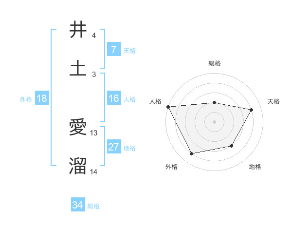 井土 愛溜さんを姓名の画数から五運を鑑定